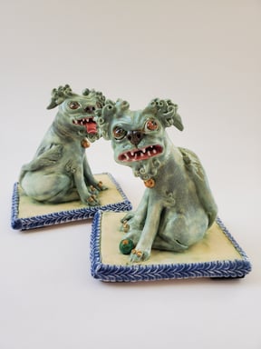Foo dogs (pastel blue green)